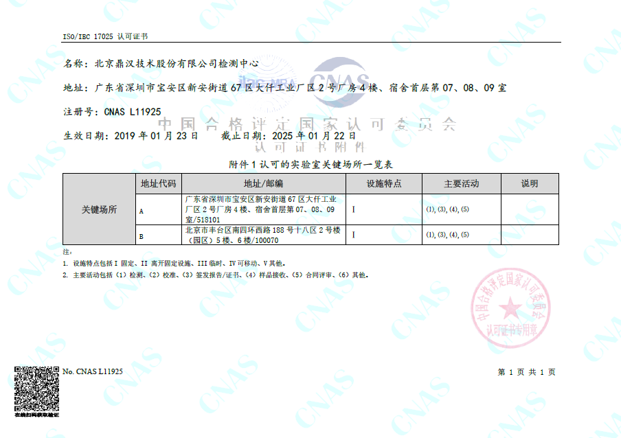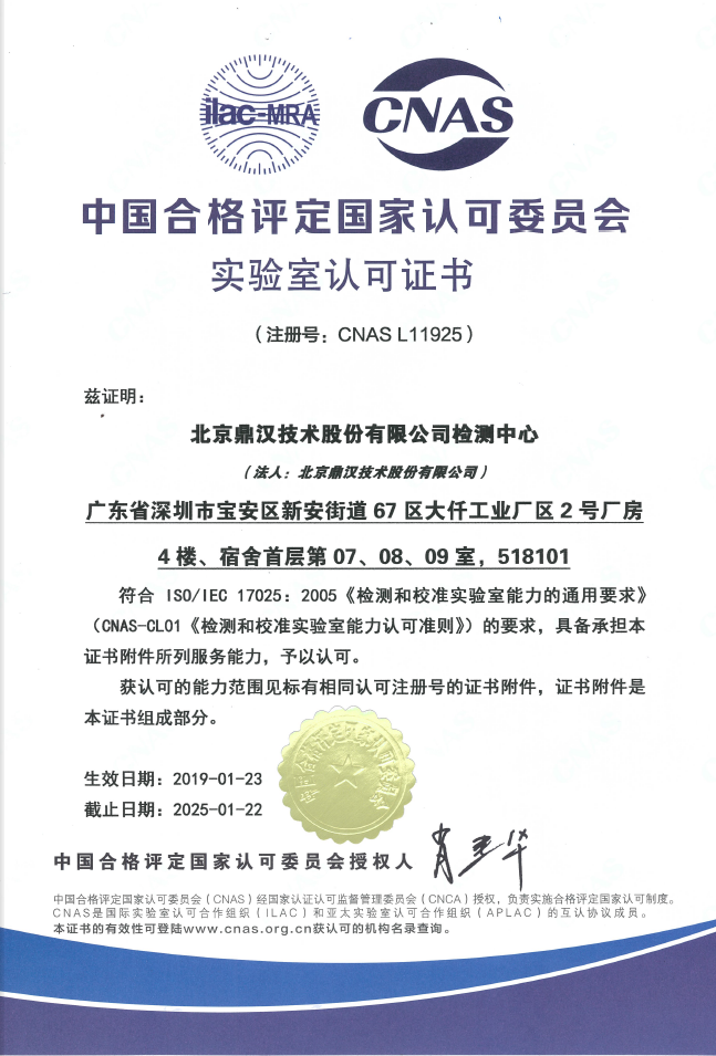 熱烈祝賀鼎漢技術(shù)檢測中心通過CNAS認可