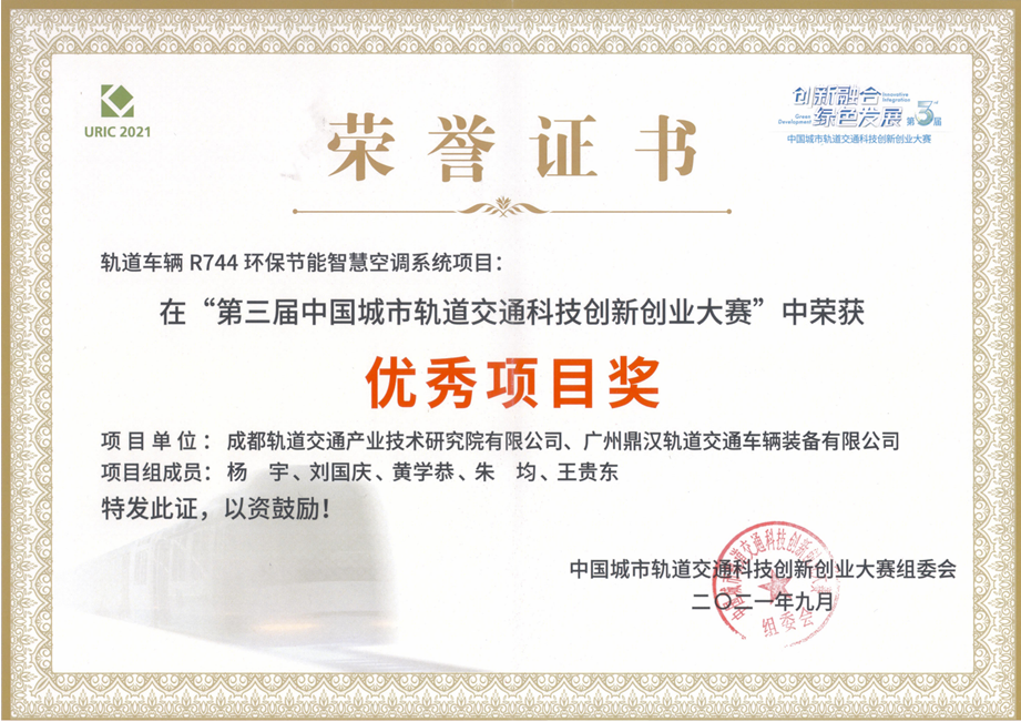 鼎漢技術(shù)軌道車輛R744(CO2)環(huán)保節(jié)能智慧空調(diào)系統(tǒng)榮獲“第三屆中國(guó)城市軌道交通科技創(chuàng)新創(chuàng)業(yè)大賽優(yōu)秀項(xiàng)目獎(jiǎng)”