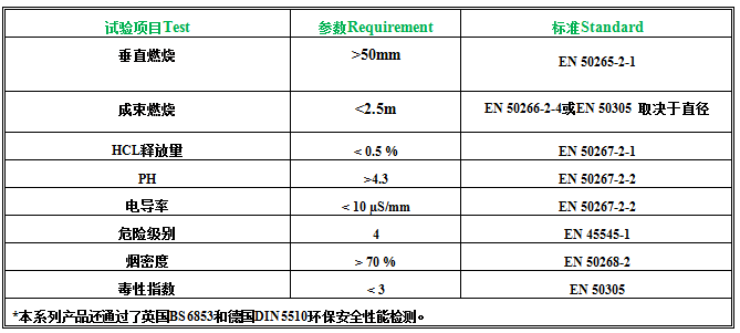 2、EN 50306特殊防火性能的鐵路車輛薄壁電纜